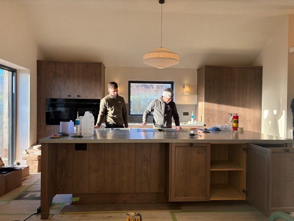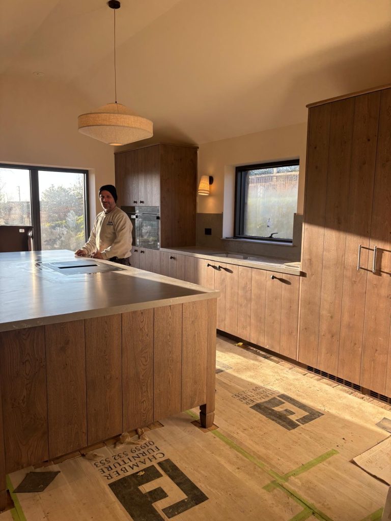 Among the rhythm of our workshop this week, we’re shining a light on an almost-finished bespoke luxury kitchen within a newly built barn – a home designed with the warmth and authenticity of a traditional farmhouse, now on the brink of welcoming its very first Christmas.