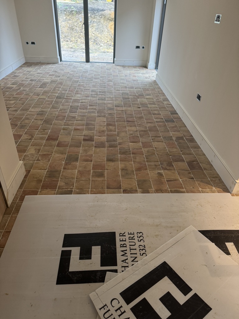 “My starting point was always the reclaimed terracotta,” she reflects. “I wanted to make sure that all the flooring and surfaces were traditional and reclaimed where possible. But because it’s a new build barn, I wanted to use traditional materials with a more contemporary finish.”