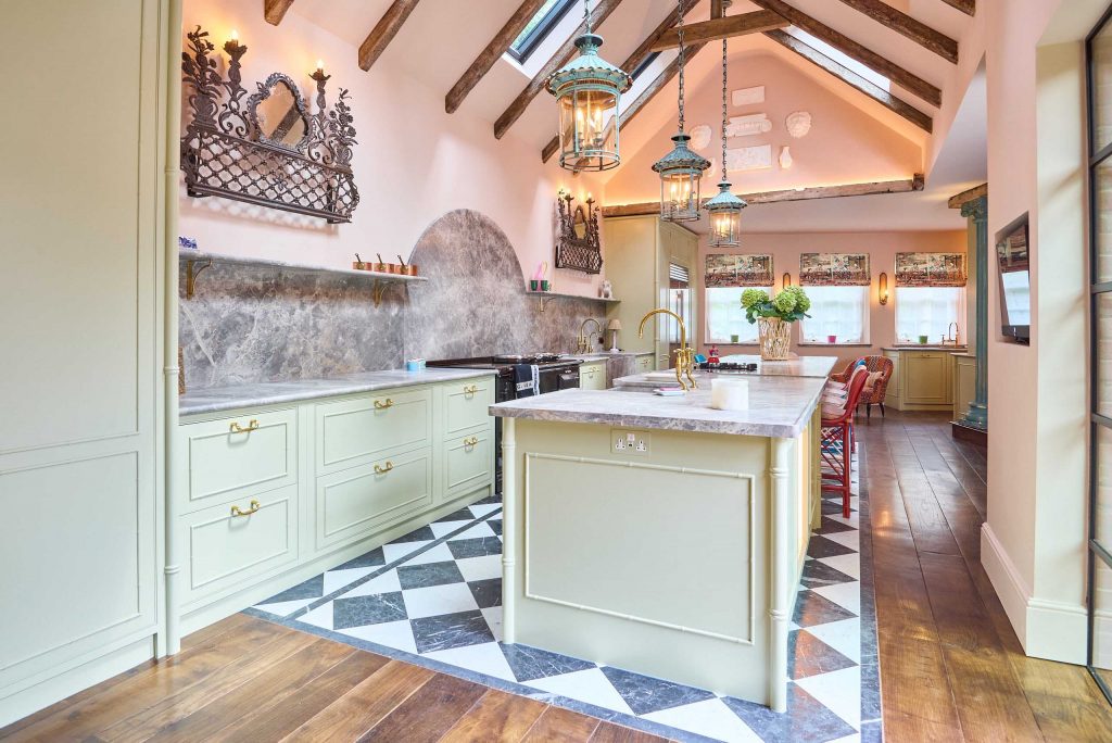 A love for interior design guided the elegant modernisation of a Georgian rectory – shaped by French and Italian influences, and infused with softly coloured pastel hues that nod gently to Marie Antoinette.