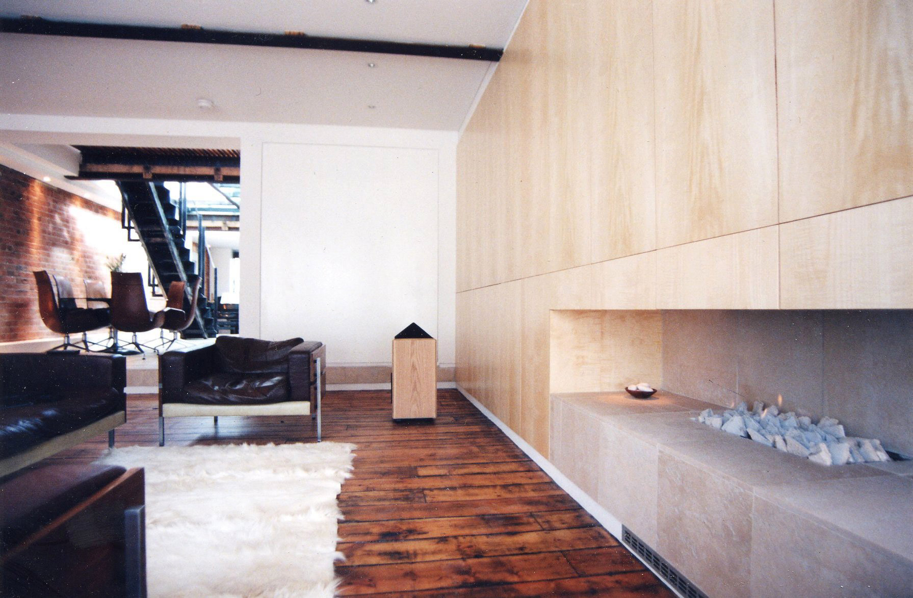 This full feature wall of natural light oak cabinetry provides endless storage and an elegant solution to a contemporary setting. The natural wood built in cupboards have been designed to work in harmony with the natural hues and other textures of this stylish setting.