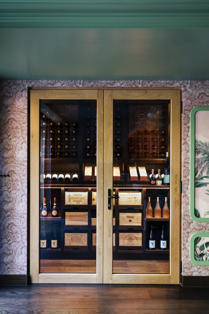 Opposite the bar, a fully conditioned wine room provides storage for a range of bottle sizes – positioned perfectly for selecting a bottle and settling in with a glass at the bar.
