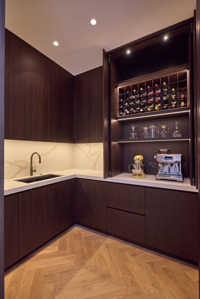 Even the most devoted collectors with grand cellars below often find joy in the smaller gestures – a fridge within the island for dinner parties, a few bottles kept close to hand, a bottle shared without occasion. A cellar may hold the treasures, but it’s these unplanned, familiar moments that can bring the greatest pleasure. We design with this in mind, giving everyday practicality the same importance as the grander statement pieces.